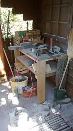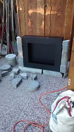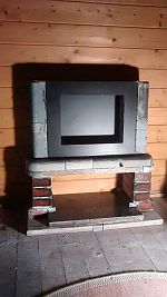 Den Metallkamin mit Tank für Ethanol gab es günstig. So entstanden nach und nach die ersten Formen. Der Speckstein ist sehr weich und ließ sich gut bearbeiten und schneiden Außerdem speichert er Wärme sehr gut, was bei dem kleinen Kamin (ca 1Kw) von Vorteil ist. So kann ich es mir auch bei schlechterem Wetter bissel gemütlich machen.